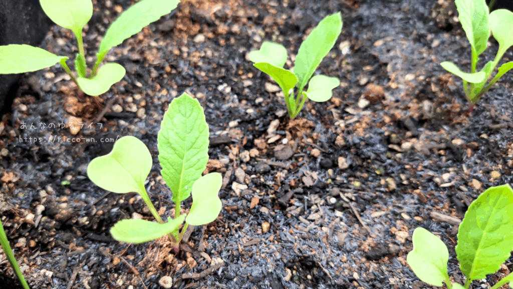 大根は本葉が出始め、かなり順調に育っています。