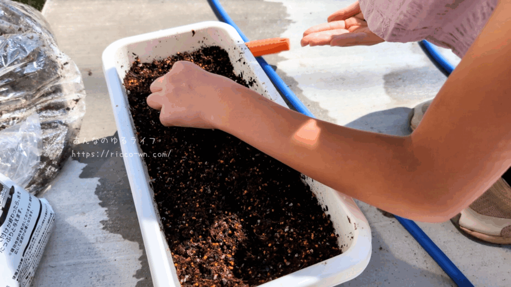 届いた状態では土がとても乾燥しているので、水で濡らしながら作業しました。