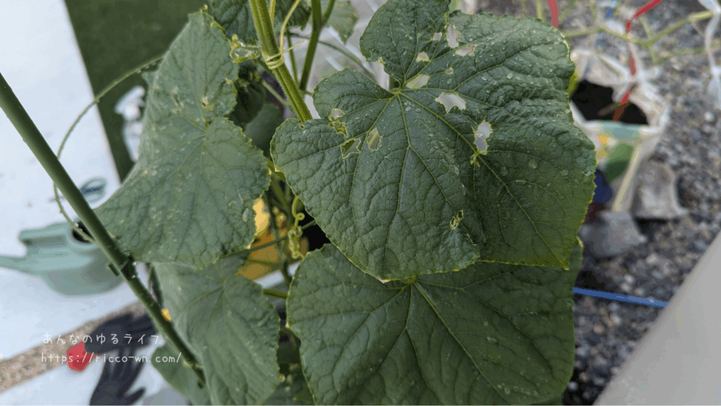 虫も相変わらずで、この先きゅうりが沢山実る想像ができなく、栽培を終えることにしました。